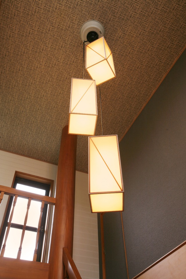 玄関 入り口 和紙 和風照明 吹き抜け 赤 などのインテリア実例 15 06 12 19 50 40 Roomclip ルームクリップ 照明 インテリア モダン